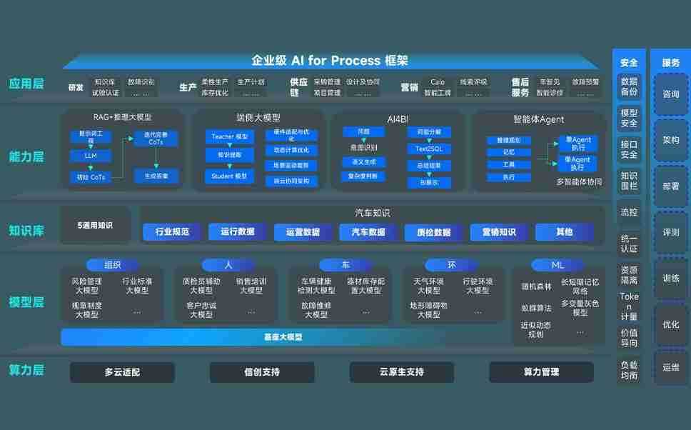 端到端的一站式AI工作空间深度融合了从企业战略规划到日常经营的全流程业务板块,,,定向解决车企内部领域多、、、、部门多、、、链条长、、场景碎片化等难题,,,支持车企快速构建以AI为核心的生产力写作体系,,实现任务执行与AI能力的无缝集成与交互